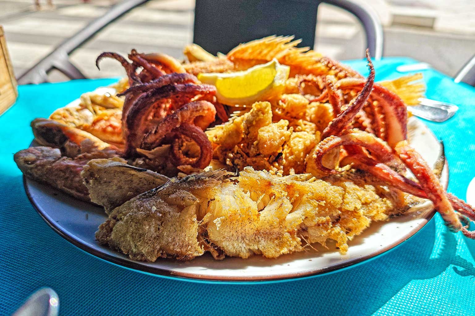 La fritura de pescado también nos pareció correcta en cantidad para dos personas. No saldrás con hambre, que ya es bastante decir. A veces hay frituras que llegan a la mesa con mucha decoración y poca intención. Aquí, por suerte, no fue el caso. La ración tenía una cantidad adecuada y, en conjunto, el plato funcionaba bien para compartir.